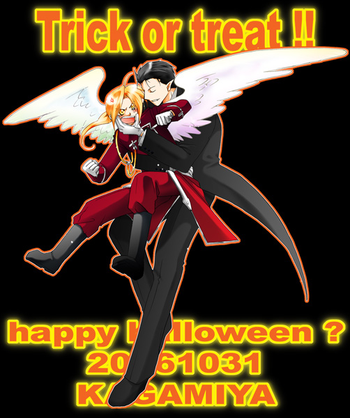 "スロウキャット"カガミヤ様の処でフリー配布のハロウィンイラをゲッチュして参りました! 天使エドさんのこの後が非常に気になります(笑)。 絶対イタズラされてますよ! カガミヤ様の二人は、空気が凄い良いのです。 甘えないエドさんに萌え・・・! エドさんに必死なロイ殿に萌え! リンクを貼らせて頂きましたので、リンクページから是非どうぞv カガミヤ様、時期後の掲載許可、ありがとうございました!