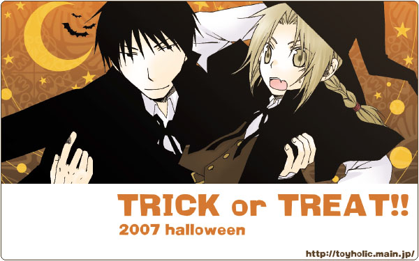 ************************************************************* "toyholic"コトコ様の処でフリー配布になっていた、ハロウィンイラストを 今年も(あ)奪って参りましrた! 姫だっこ!! そのまま何処に攫う気なのか・・・! ・・・マスタング邸ですよね、勿論☆ イラストもお話も漫画も描かれるコトコ様のサイトは、リンクページからどうぞv コトコ様、掲載許可ありがとうございました!